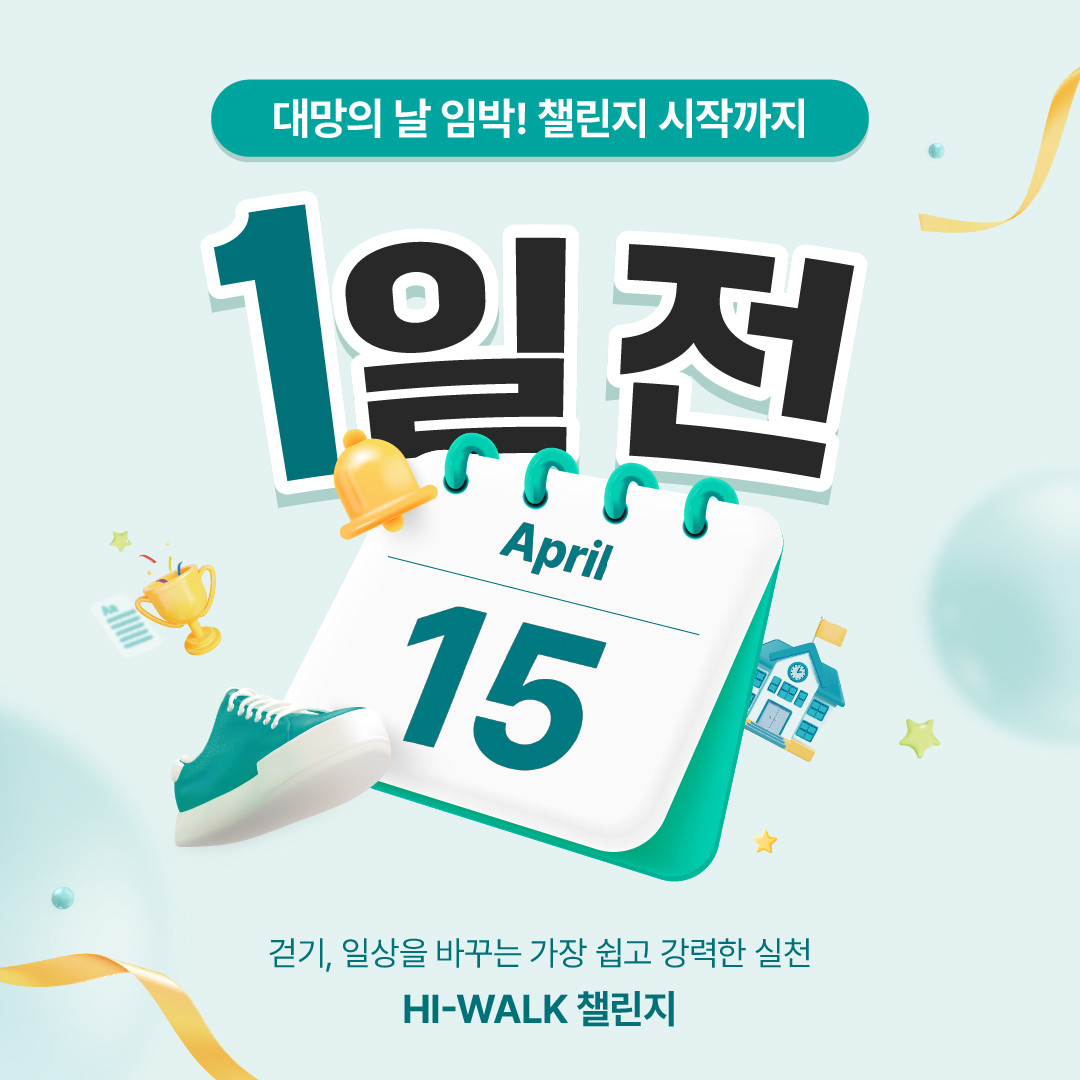HI-WALK 챌린지 시작까지 D-1! 빅워크앱 가입은 하셨나요? 강원도 학교 대항 걷기 챌린지가 내일 시작해요! 우리의 한걸음, 한걸음이 모여 다함께 HI-WALK를 만들어봐요 날짜가 다가오면 다시 안내드릴게요 함께 걷는 즐거움, HI-WALK 챌린지 [지금 바로 참여하기] 👉 https://www.hiwalk.co.kr/challenge/guide ------ 문의: HI-WALK 캠페인 운영사무국 (02-332-6813 | info@hiwalk.co.kr) |